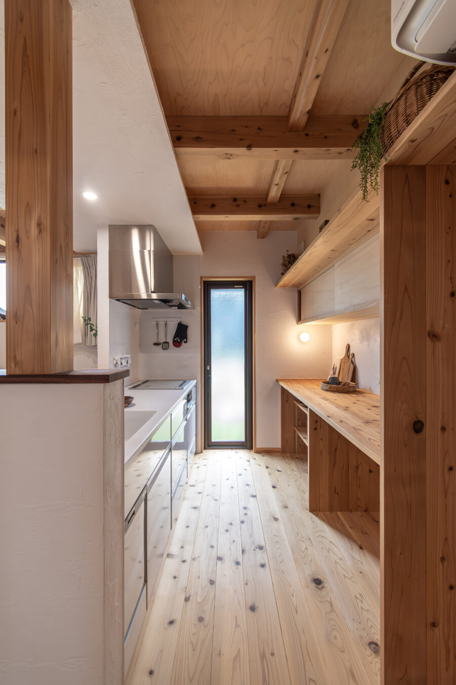 水廻りにも、ふんだんに使われた杉の無垢材が富山の高温多湿の風土を心地よくしてくれます